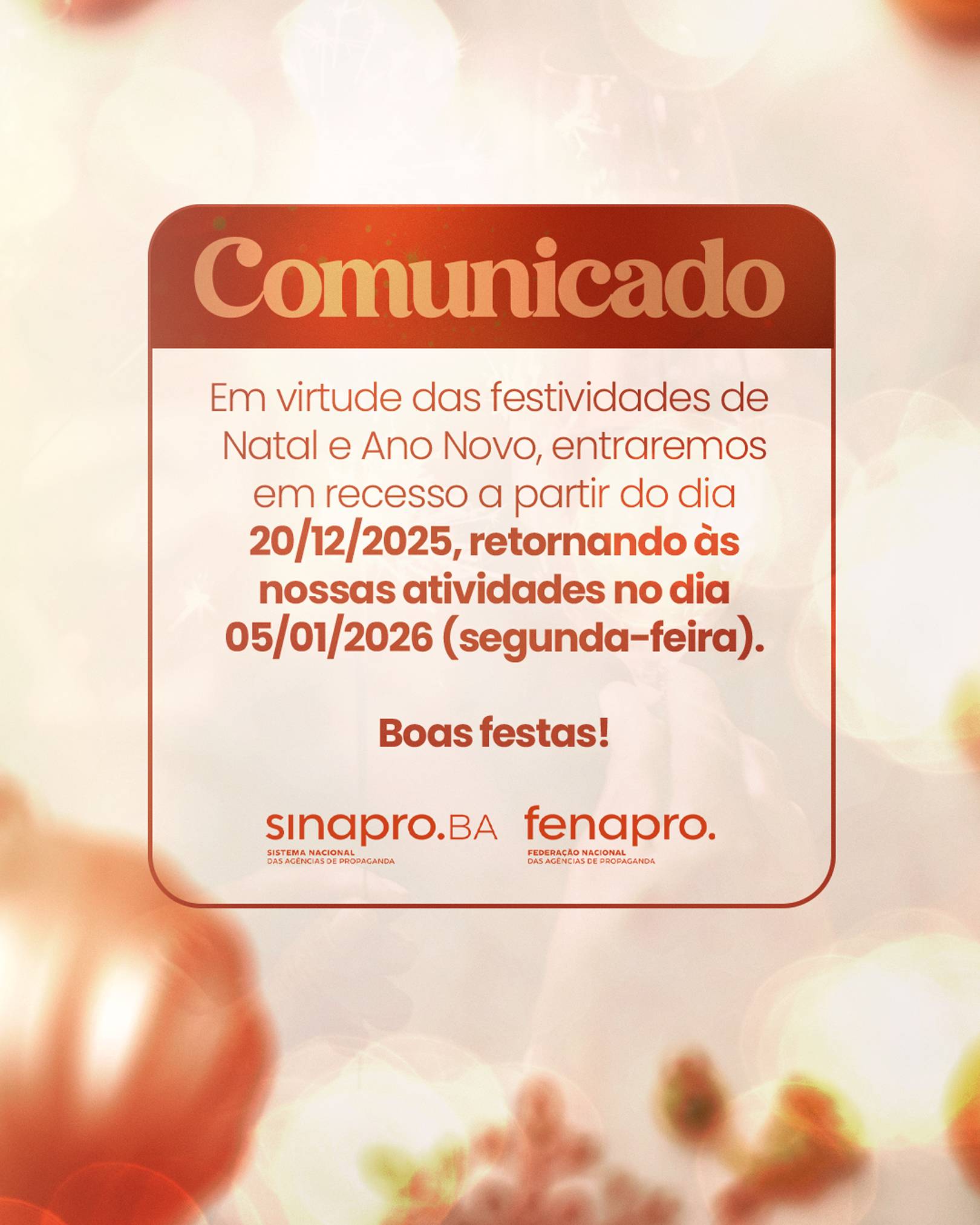 Comunicado Referente ao Recesso de Fim de Ano do Sinapro-Bahia